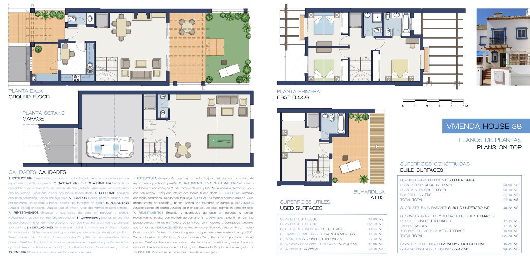 Pareadas y adosadas, en urbanización de 8 viviendas. Frente al Mar, en Valle Romano Costa. Entre los Hoteles H·10 y Elba.